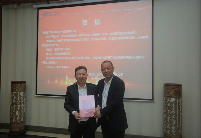 上午9:30交流會(huì)正式開(kāi)始,會(huì)上,長(zhǎng)安汽車總工程師王波先生向天誠(chéng)公司頒發(fā)了QCA賀信并對(duì)天誠(chéng)公司發(fā)展表示肯定與勉勵(lì)。